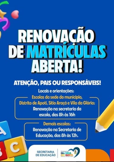 Renovação de Matrículas Aberta ABERTA - ANO LETIVO 2026!