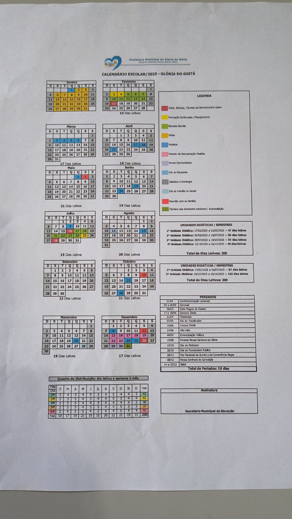 CALENDÁRIO ESCOLAR 2025
